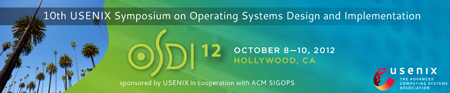 Join us in Hollywood, CA, October 8–10, 2012, for the 10th USENIX Symposium on Operating Systems Design and Implementation. The 10th OSDI seeks to present innovative, exciting research in computer systems. OSDI brings together professionals from academic and industrial backgrounds in what has become the premier forum for discussing the design, implementation, and implications of systems software.